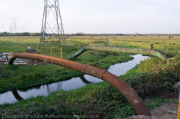 The Colne is quite a sizeable stream. Local youths sometimes like to walk across these pipes