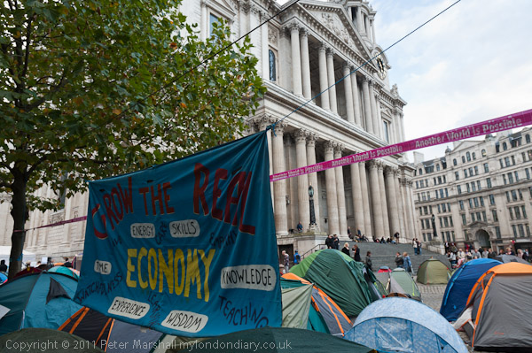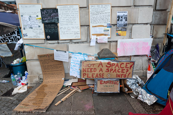 Occupy London were later forced to stop using the Underground logo by legal threats, although there seemed little danger of them being confused with London's transport provider. The ban on alcohol is observed by many residents, but OccupyLSX attracts and supports some of the drinkers who live