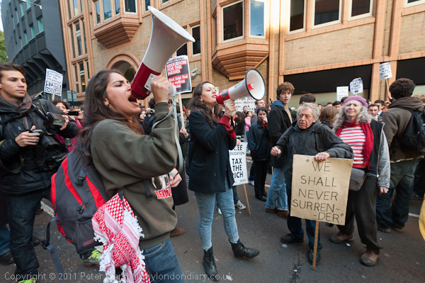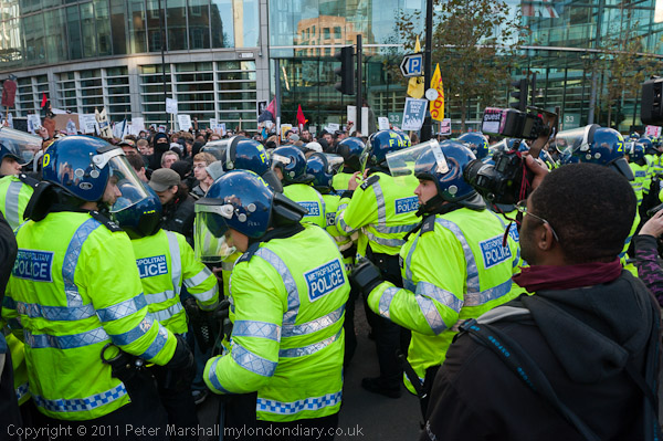 Only a few hundred people had arrive at Moorgate, the rest held up by police on High Holborn, so I decided