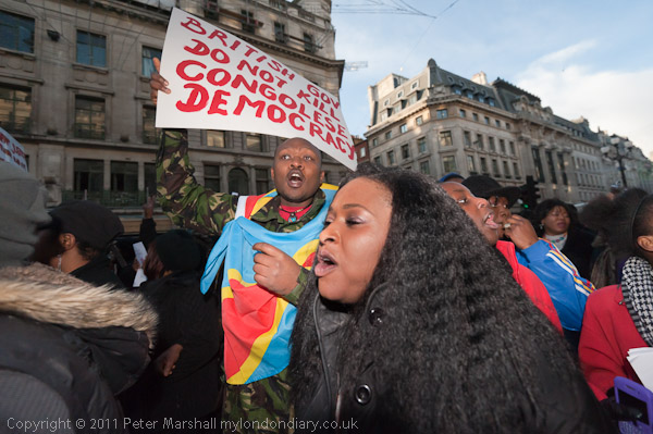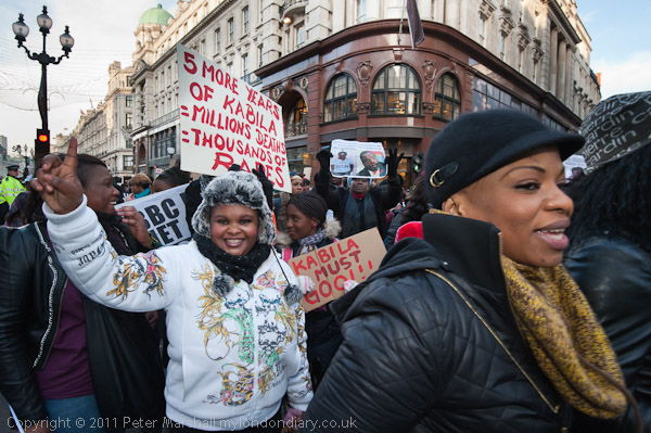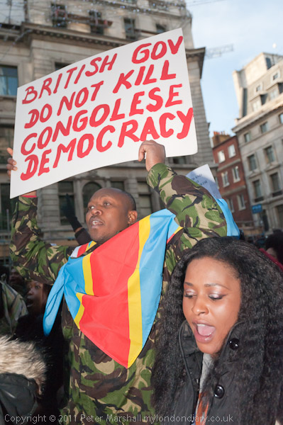 Posters called on the UK and Obama to stop supporting Kabila "He is a Killer"