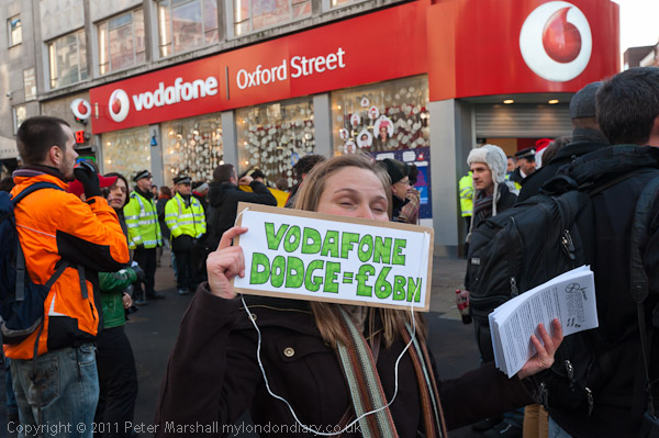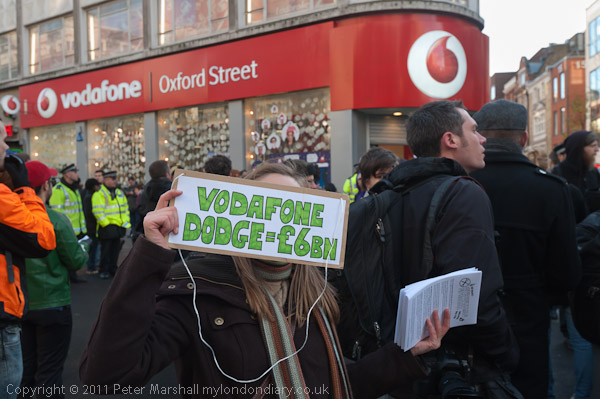 and again used the 'human microphone to read out about Vodaphone's tax dodging