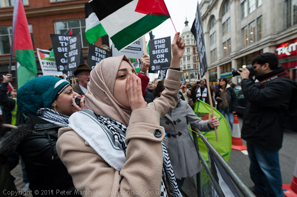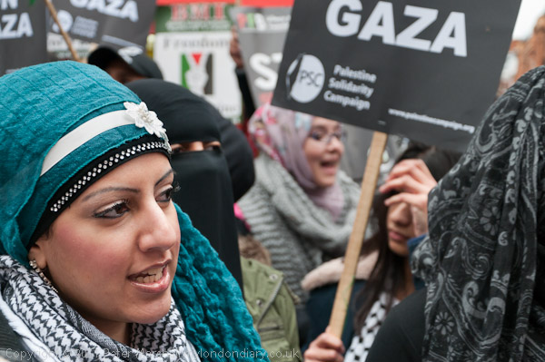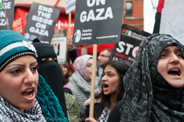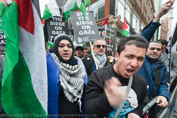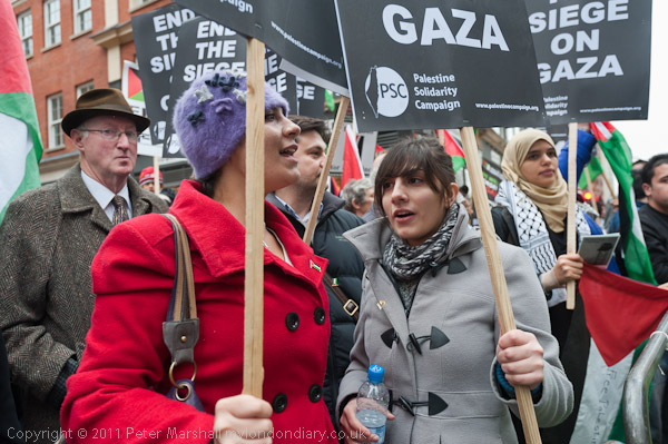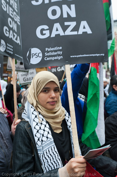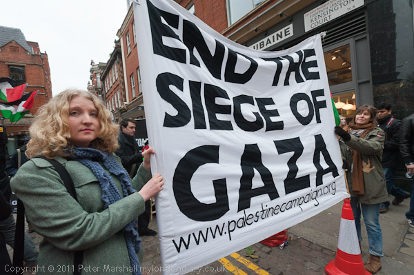 Banners and placards called for an end to the siege of Gaza which is killing many Palestinians and harming others