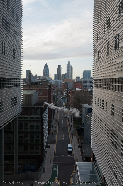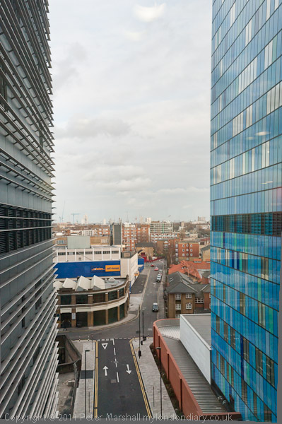 ![]() The view west towards the City along Fieldgate St, with the distinctive green domes of Tower House ![]() ![]() There is less to see to the east |