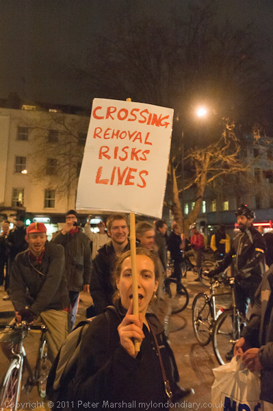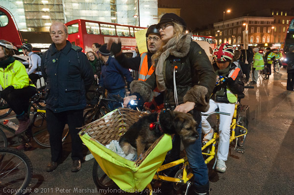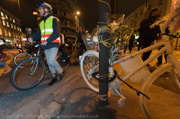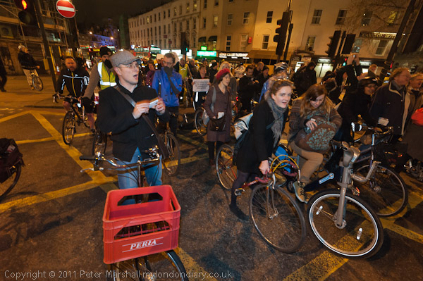 I counted around 150 bikes in the protest and there were around 50 people on foot as well