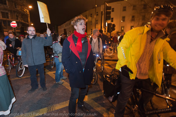 and stops on the box junction, where Tamsin Omond is leading some chanting