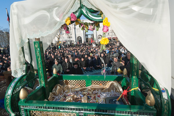 In front of the people at prayer were the cradle in memory of Hazrat Ali Asghar