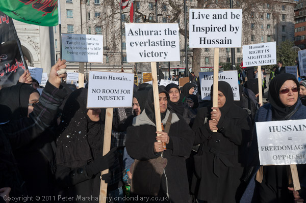 The women had many placards about Imam Hussain