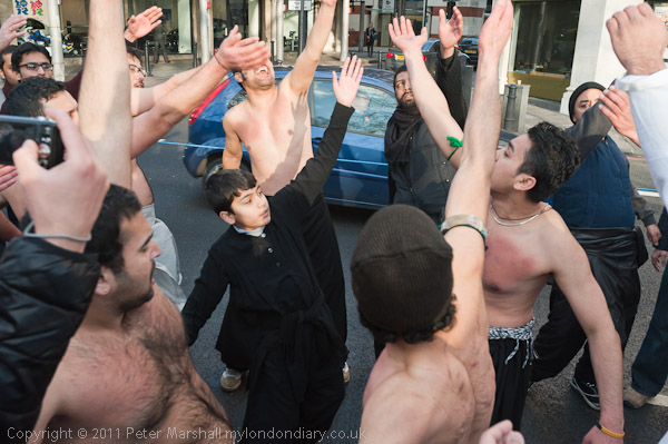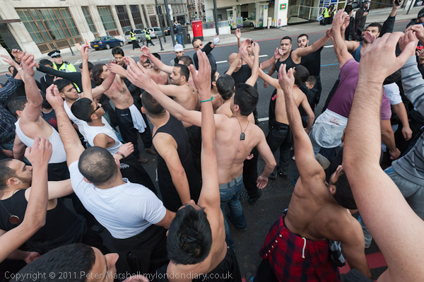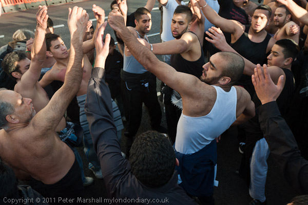 Some groups of men get down to some very energetic beating of breasts on Park Lane
