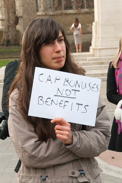 'Cap Bonuses NOT Benefits' and 'STOP Wlefare Reform Bill'