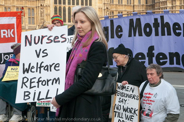 A nurses representative had come to support the protest against the Welfare Reform Bill