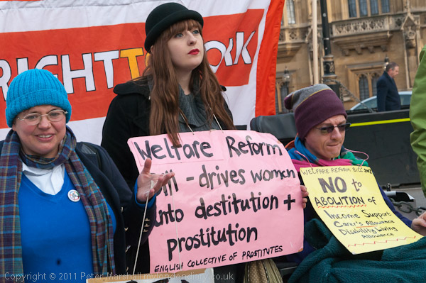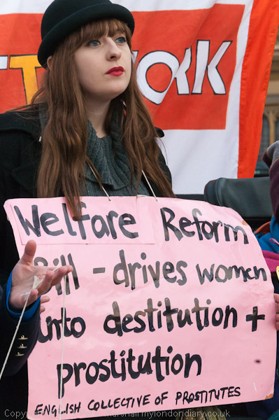 'Welfare Reform Bill - drives women into destitution + prostitution' - English Collective of Prostitutes