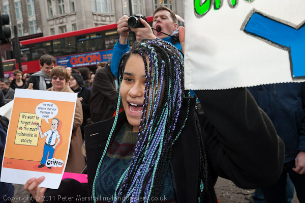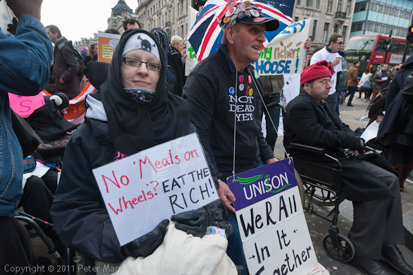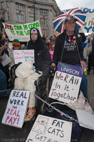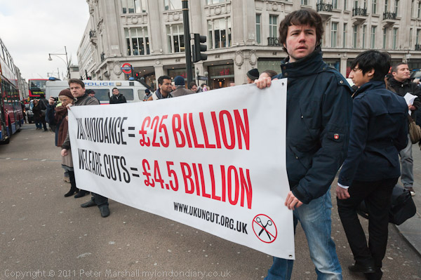 The UK Uncut banner made a clear point - cutting down on tax avoidance would easily raise enough to avoid benefit cuts
