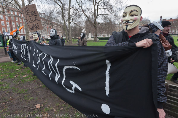 'Anonymous' came with a large banner 'Obama Bin Lying!'