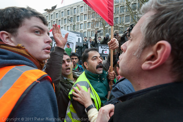 Free Iran supporters began to shout loudly during one of the speeches, calling for support against dictatorship