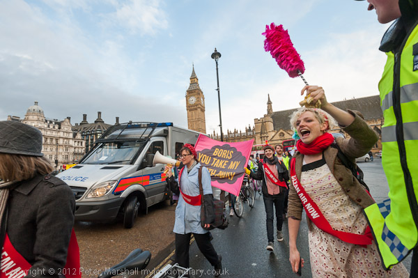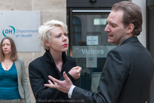 Although the Act to privatise the NHS has passed, campaigners still trying to save the NHS as a free and universal service protested on World Health Day outside the Department of Health in Whitehall with a performance of the play 'Lansley's Bill'.