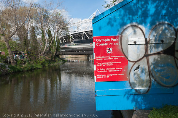 It's getting close to our last chance to see much of the Olympic site before the games, with the Greenway closing in Hackney Wick at the end of the month and the short section from Pudding Mill Lane giving access to the View Tube from mid-May. And on 3 July the towpath along the Lea Navigation will be closed too, along the length of the Olympic site. The navigation will be more or less closed to boats too, with passage only possible during an early morning or evening window for those who have booked at least a week earlier.