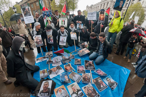 Around a hundred protesters came to Downing St to show their support for the more than 1200 Palestinian prisoners in Israeli jails on hunger strike against administrative detention and other issues.