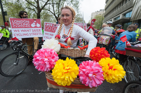 It was impossible to count the number of cyclists of all ages and sizes who took to London's streets to call on the next London mayor to show their commitent to making London's streets safer and healthier by encouraging walking and cycling. Some estimates put the number of riders at around 10,000, and at the start of the ride through central London, cyclists filled Park Lane and more were still arriving and later the ride more than filled the length of Whitehall.