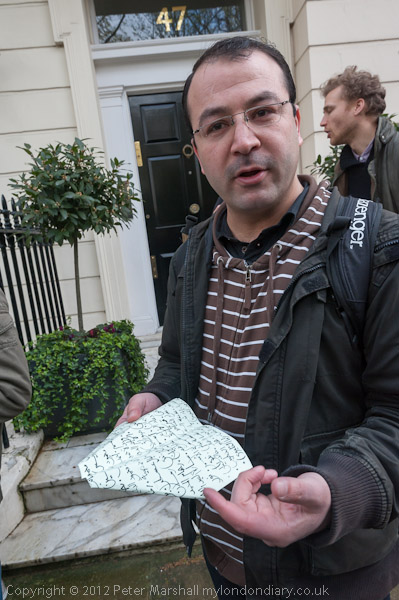 Police tell the protesters they may only protest on the opposite side of the road from the embassy