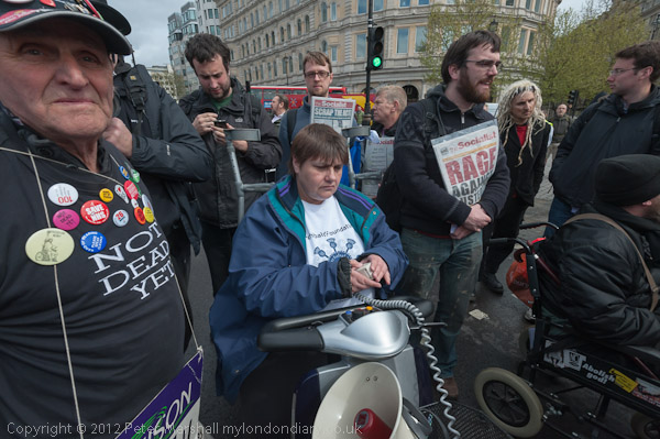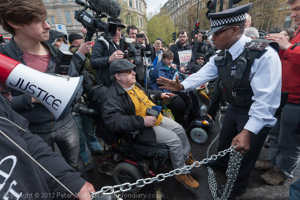 But the protesters moved onto the road and chained their wheelchairs in a line across it