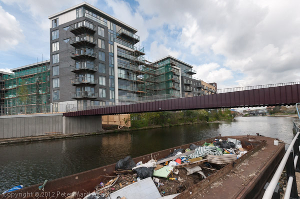 Cleaning up the canal - doubtless for the Olympics. Once an industrial area this is now devoted to expensive flats