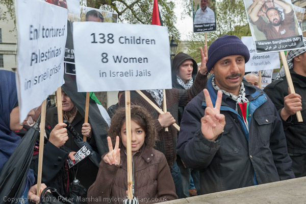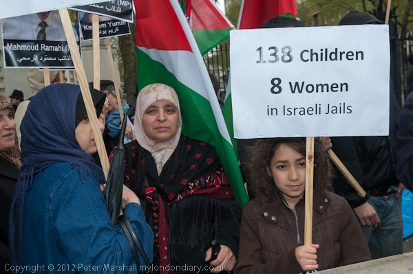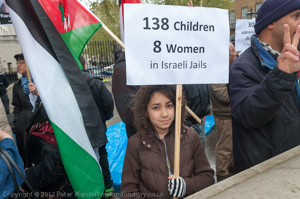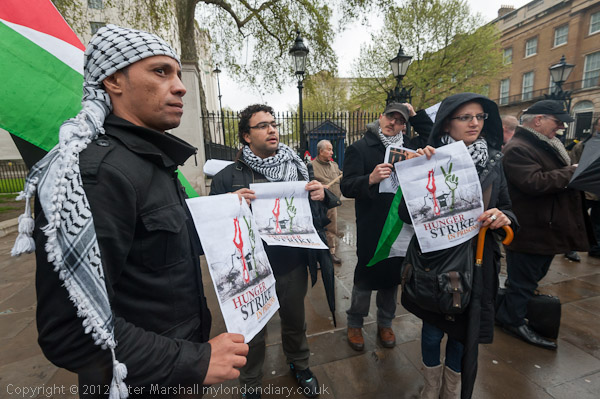 Protesters held placards with pictures of some of the 1200 or more prisoners on hunger strike
