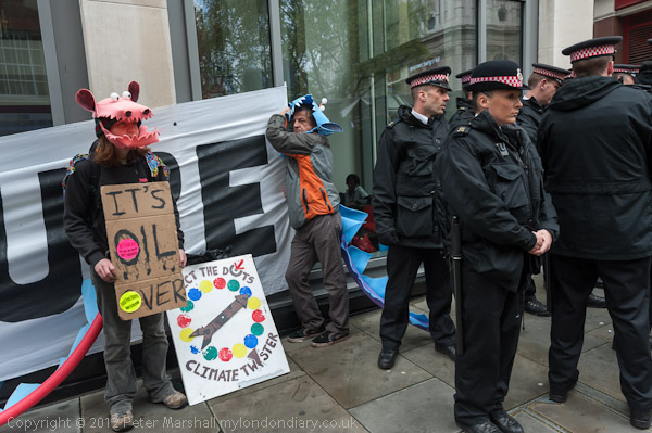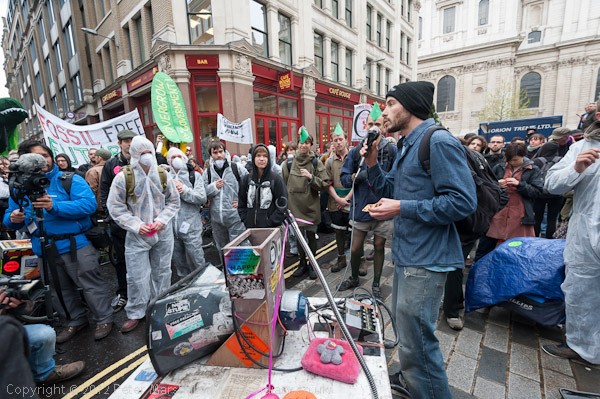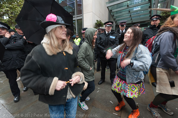 Protesters dance on the street outside the main entrance of the Grange Hotel