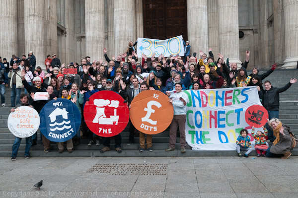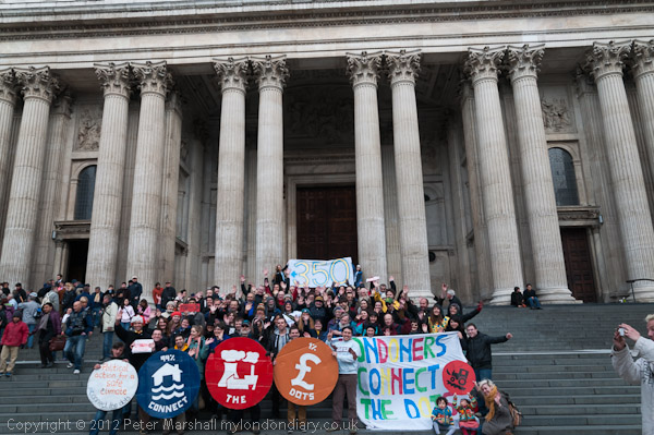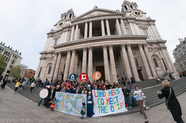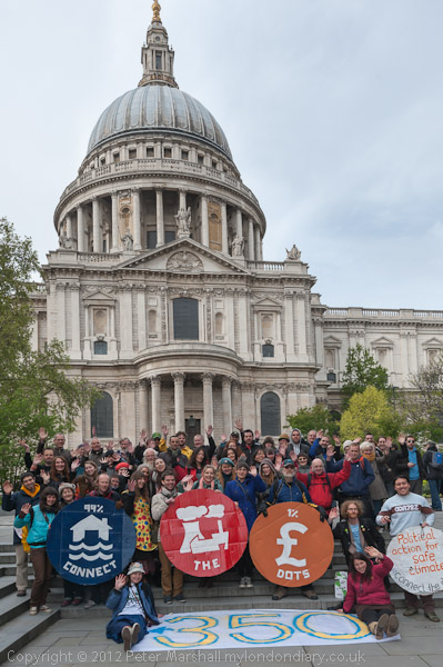 People are lined up in front of St Paul's Cathedral for the 'Connect the Dots' photo