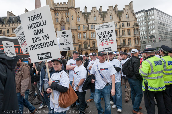 Welsh police say 'Totti Heddlu Gan 20% Yn Troseddol' 'Cutting Police by 20% is Criminal'