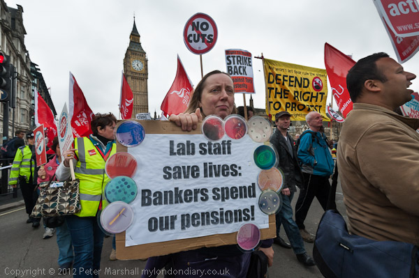 'Lab staff save lives: Bankers spend our pensions'