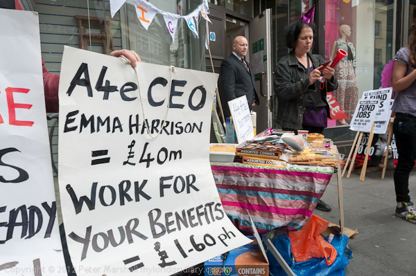 Emma Harrison got £40 million while those on workfare get £1.60 an hour says the poster