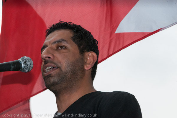 Campaigners for the release of Shaker Aamer wearing Cameron and Obama masks