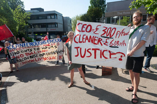 Ocean is the company who employ the cleaners. Their banner calls for No Redundances, No Cuts to House