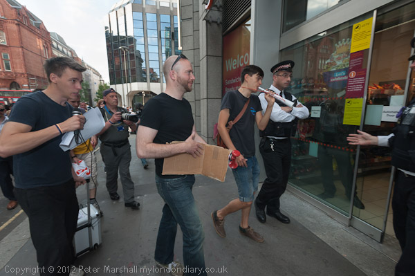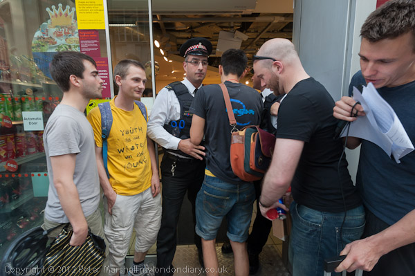 The police arrived soon after a handful of the protesters had made their way into the shop