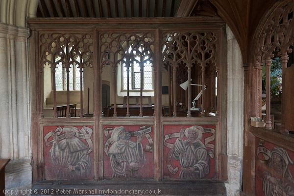 ![]() Stained Glass Early C15 by the Doddiscombsleigh school of glass painters and wall painting of the mass of St Gregory ![]() ![]() ![]() ![]() |