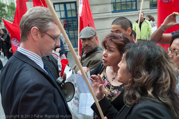 The LSE Facilities Manage came to talk to the cleaners at the start of the protest