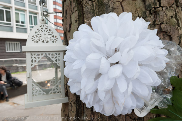 Sean Rigg's sister Marcia puat some tulips on the tree