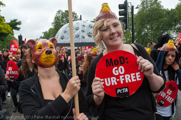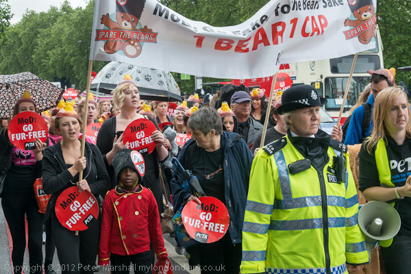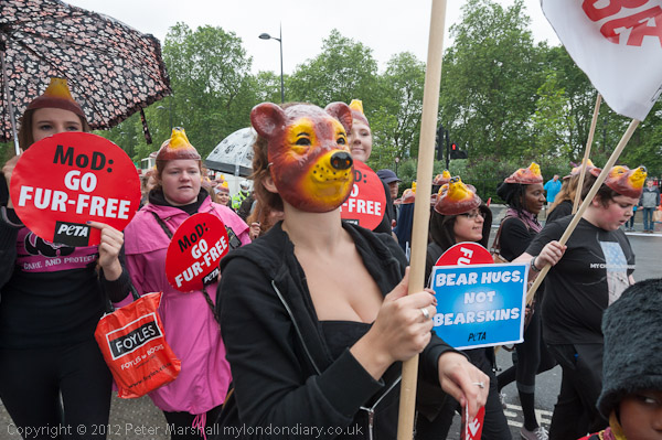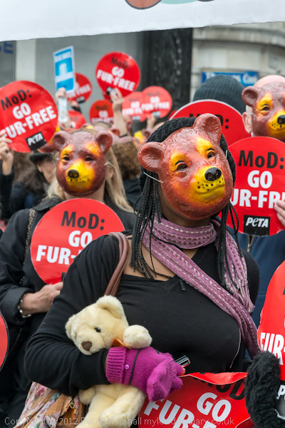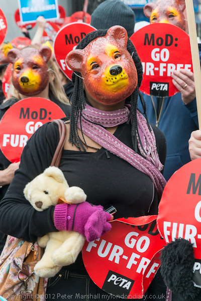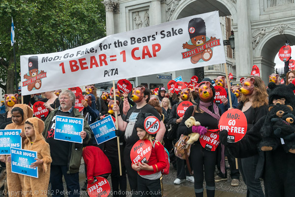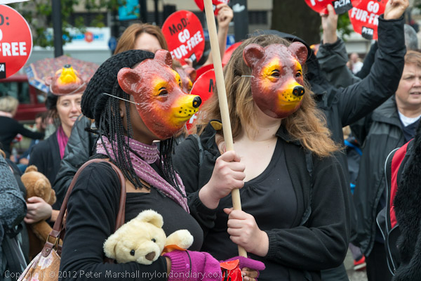 There was a final short photo-call at Marble Arch. Many marchers had brought their own teddy bears with them and worn black as PETA requested