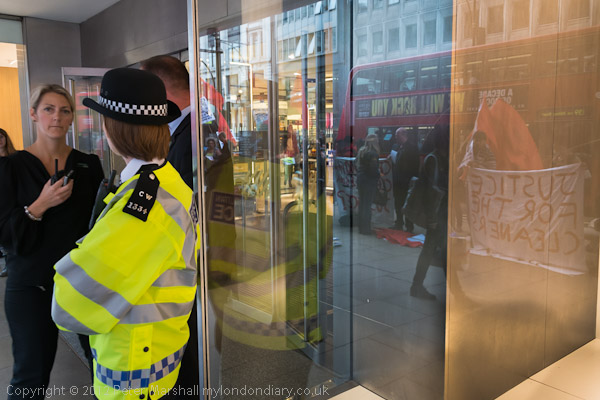 John Lewis manages talk with police outside the store as the protest gets under way