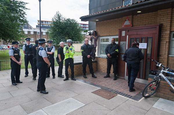5 PCSOs, 4 BBC Security men and a police officer stopped us entering the block of flats