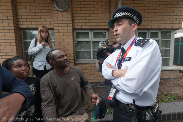 Constable Tulloch who appears to be Olympic security, arrives and talks to Colin