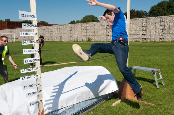 When the bar was raised a couple of helpers lifted it for the banker and replaced it after his 'jump'