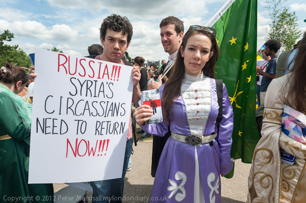 Circassians protest against the 2014 Winter Olympics in Sochi and call for exiles to be allowed to return