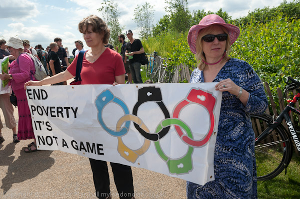 Olympic symbol made by handcuffs 'End Poverty It's Not A Game