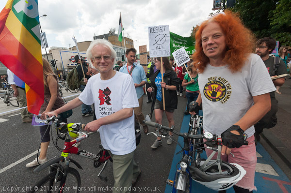 A number of people wore the 'Official Protester' t-shirts from the Space Hijackers