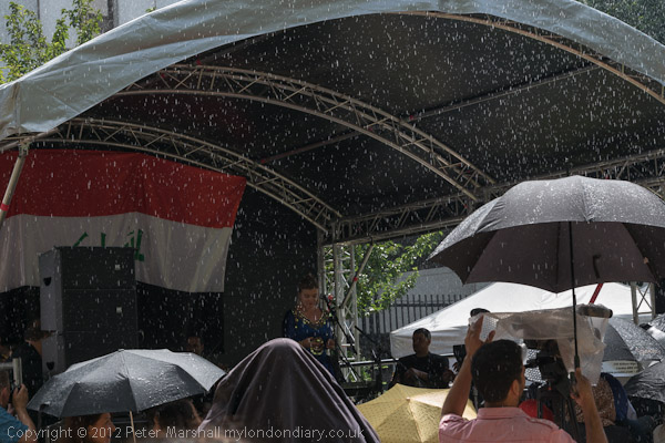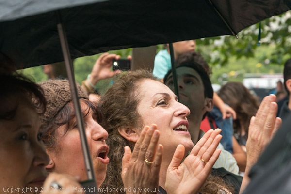 People kept listening and applauding the singing despite the rain - most had umbrellas
