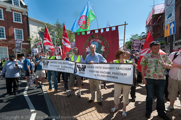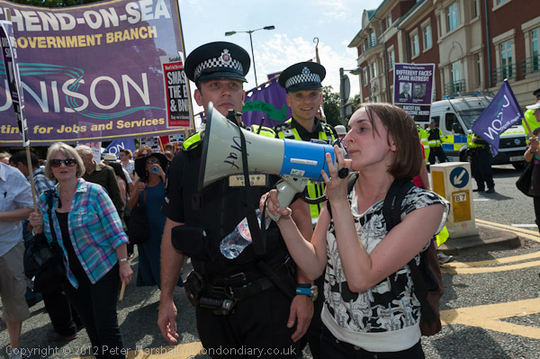 Police hold the Essex Unite Against Fascism march until the EDL are inside the cordon around their rally