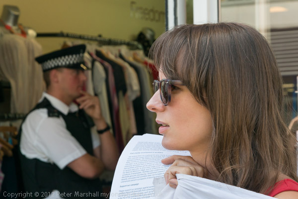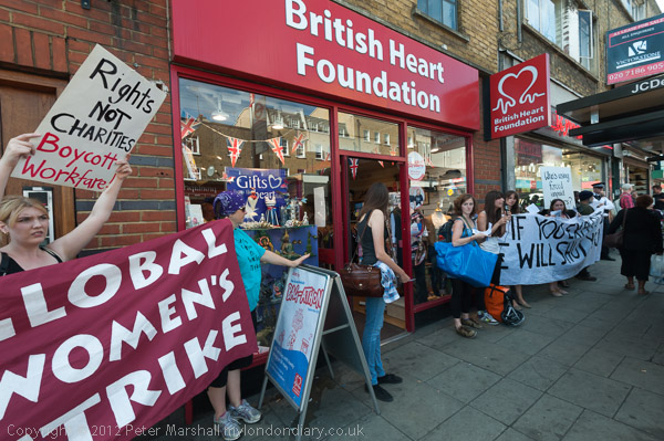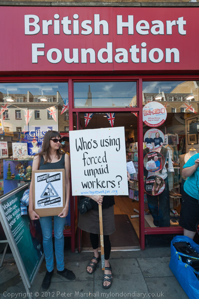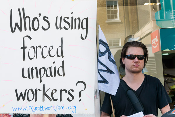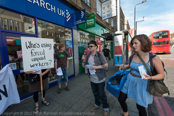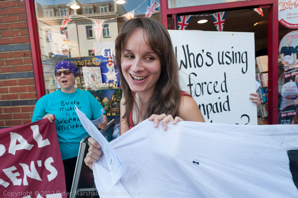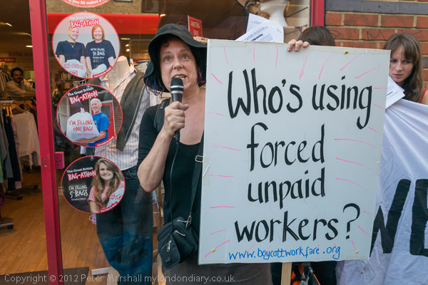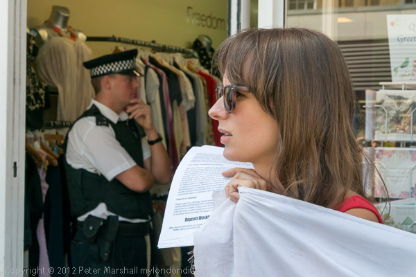 A couple of the protesters went in to talk to staff and give out leaflets. Some of the staff in this shop are unpaid, forced to work for nothing