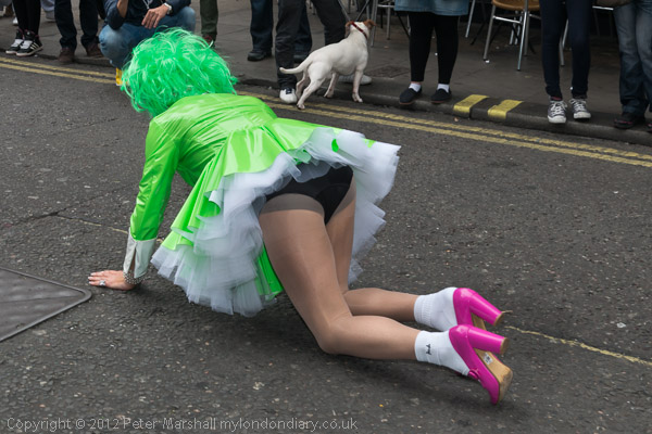 It was quite a tough race, but this was a theatrical fall to show off those heels and black underwear