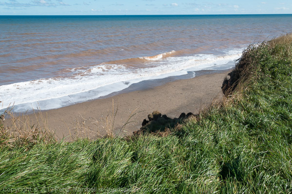 The path on our map was around the middle of the picture under the waves. The mud cliffs are being eroded